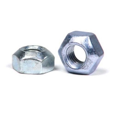 All Metal Lock Nuts are prevailing torque lock type nuts with no non metallic insert. These All Metal Lock Nuts have a conical top and a flat bottom bearing surface with chamfered corners. The locking action, created by distortion of their top threads, is said to resist loosening caused by shock, vibration and other dynamic forces. Since they are top locking and only the bottom surface is flat, prevailing torque lock nuts are considered one way lock nuts because they are installed one way - conical top up. Being all-metal, they are not subject to the temperature and chemical limitations of non-metallic inserts.