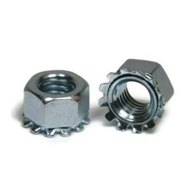K Lock Nuts consist of a hex nut with a free spinning external teeth bearing washer that created locking mechanism against the nut surface and the mating surface. K Lock Nuts are general purpose nuts with moderate load bearing capacity. K Lock Nuts are widely available in stainless steel, zinc plated steel with both metric and imperial sizes.